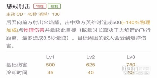 数值分析:基础伤害随着等级提升而增加,冷却时间缩减,后期达到了440和5秒冷却,二技能作为一个控制型技能,有伤害还有减速,对范围敌人也能造成伤害,比一技能的效果收益大,所以推荐主点二技能。