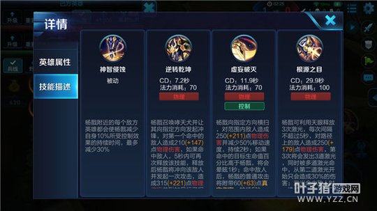 被动-神智侵蚀:杨戬附近每个敌方英雄会降低杨戬的受控制时间。
