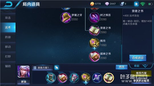 分析:到了后期,高渐离在做到对敌方后排造成威胁的同时,也要考虑出法术穿透的道具,虚无法杖带来的被动,提供了非常可观的法术穿透,是十分合适的,而作为要冲锋陷阵的法师,良好的血量上限也很重要,而贤者之书在给予高额的生命值同时,也给予了非常高额的法术攻击,加强了高渐离的伤害同时,还保证自身的血量上限。