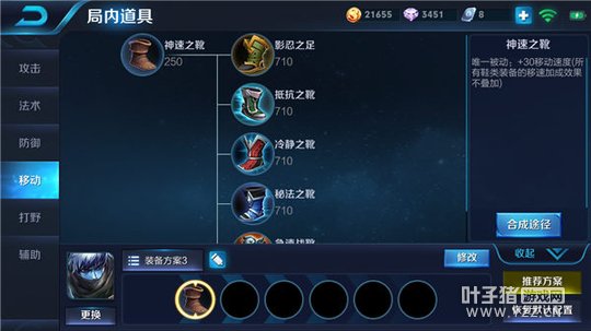 解析:扁鹊作为一名标准的法师英雄,出门装备选择神速之靴是再好不过的,因为前期选择一件增加法术攻击属性的装备并不能对其伤害造成较大的影响,并不能有效的在与敌军对线时建立优势,且增加的法术攻击属性完全可由铭文弥补,不必要前期就选择增加法术攻击的装备。同时神速之靴还提高了扁鹊的移速,使得扁鹊自身更加灵活,躲避敌军非指向性技能的能力也有了很大的提升,更加容易的在对线时建立优势。