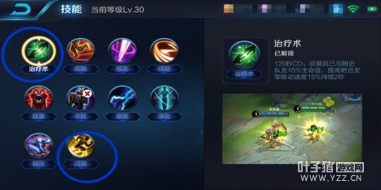 大乔技能中多为控制骚扰,没有提示队友血量能力,技能打断敌人突进还好,若没有阻止只能眼睁睁看着队友被敌方打一套输出,除去装备中携带救赎之翼外,携带治疗术能更好的保护队友,关键时刻能救队友一名。当然有些玩家觉得,救赎之翼的护盾保护能力已经足够,不必再选择奶,那可以选择携带闪现来提升大乔的逃生能力,面对敌人追击时利用闪现跨越地形让敌人放弃击杀意图。