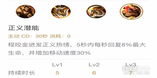 数据分析:这个技能可以百分比的快速回复自身的血量,还能增加自己的移动速度,是程咬金自身的保命技能。