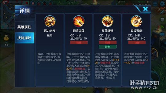 解析:该技能是孙尚香的核心技能,使孙尚香又被很多人称作只有一个技能的英雄。在团战中依靠被动效果可以不断翻滚打出成吨的物理伤害,翻滚后强化的下一次普攻攻击距离要远于普攻距离,但若在团战中对手的刺客位置没有暴露,需要注意翻滚的方向。