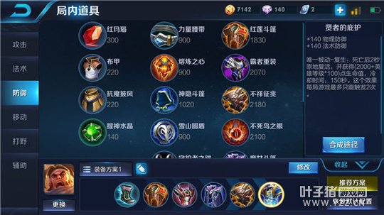 六神装推荐:抵抗之靴、红莲斗篷、反伤刺甲、魔女斗篷、不祥征兆、贤者的庇护