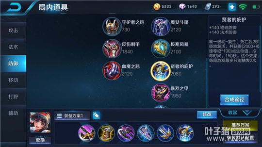六神装推荐:巡守利斧+疾步之靴+暗影战斧+冰痕之握+破军 +贤者的庇护