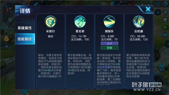 当蔡文姬受到伤害时,自身会即刻增加一定比例持续衰减的移动速度,同时回复自身生命值,此技能每十秒触发一次。这个技能大大增强了蔡文姬的生存能力,能够帮助她在团战中发挥更大的作用。