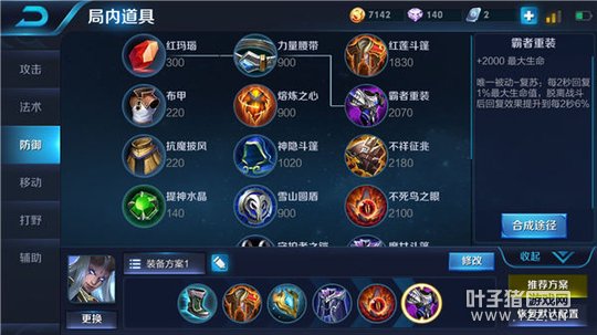 六神装推荐:抵抗之靴、红莲斗篷、极寒风暴、魔女斗篷、不死鸟之眼、霸者重装