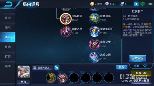 反伤刺甲能够赋予钟无艳高额的物理防御,借助反伤刺甲增加的物理防御,可以让钟无艳在前期与物理英雄作战时,取得巨大的优势,因为增加的高额反伤刺甲,可以让物理英雄几乎很难对钟无艳造成致命伤害,并且反伤刺甲的被动效果更是可以让钟无艳受到物理伤害之后返还一定百分比的伤害呈现法术伤害的形势给予敌人。