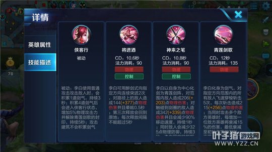 解析:一技能是李白独具特色的一项位移技能,能够连续释放两次并且有着伤害以及晕眩效果,在抓人时的作用非常大,第三次释放时返回原地,这从很大程度上提升了李白的灵活性,使李白在峡谷中可以变得更秀。