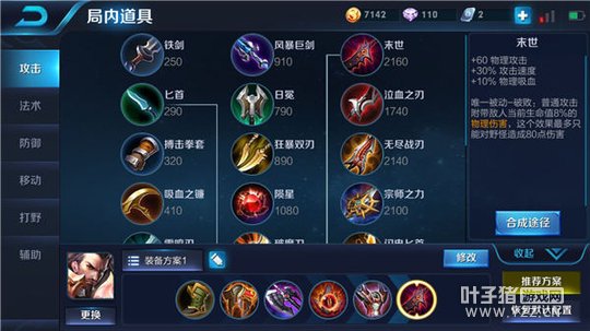 六神装推荐:影忍之足、红莲斗篷、暗影战斧、不死鸟之眼、反伤刺甲、末世