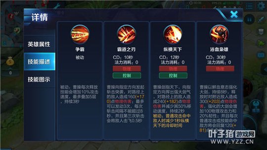 推荐加点:一技能是曹操的主力输出技能,而且一技能的技能成长值也优于二技能,所以建议主点一技能,次点二技能,有大点大。