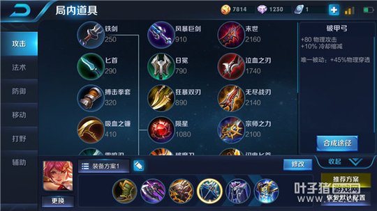 六神装:影忍之足、暗影战斧、不祥征兆、破甲弓、魔女斗篷、贤者的庇护。
