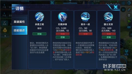 被动-杀意之枪:韩信第四次攻击会带有击飞效果,释放的技能命中目标时会增加自身攻速。