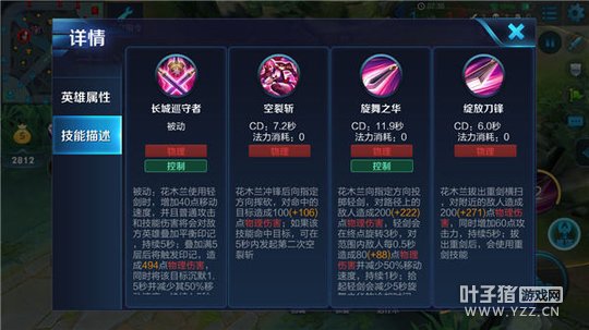 花木兰有着良好的机动性,极强的清兵能力,拥有大招后极强的单挑能力,不管是带线还是团战都能有不俗的表现,但是缺点是在前期自身的血量属性偏低,很容易遭到生命威胁,需要不骄不躁,安稳度过前期,是在中期发力的英雄,祝各位玩家上星愉快。
