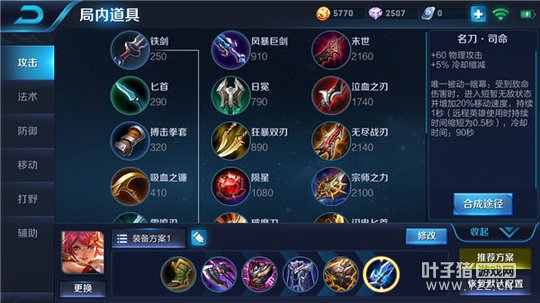 六神装:影忍之足+暗影战斧+暴烈之甲+魔女斗篷+不祥征兆+名刀·司命