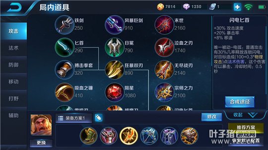 六神装:影忍之足、反伤刺甲、闪电匕首、破甲弓、魔女斗篷、不祥征兆。