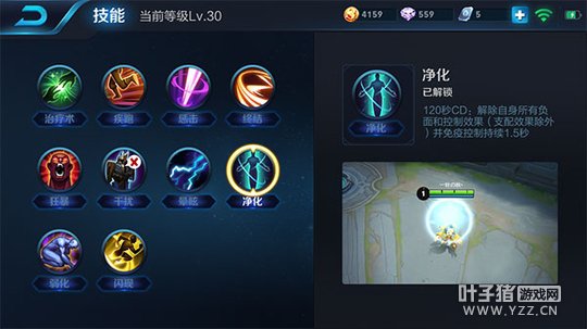 貂蝉作为一个持续输出很强的法师英雄,爆发并不是很高,需要不断的攻击敌人才可以打出伤害,因此她非常害怕敌人的控制,而净化可以解除敌人的控制,避免自己被控制太长的时间,在团战中可以打出很高的输出。如果玩家的召唤师等级过低,可以把净化换成治疗术,治疗术可以回复自己与队友的生命值,在团战中可以提升自己的生存能力。