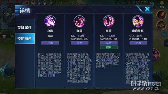高渐离定位法师,他集远程消耗、减速和AOE范围伤害于一身,是输出伤害极高的法术。虽然高渐离没有位移技能,但是依靠大招的减伤效果,他不仅能够十分从容的面对来犯的敌人,而且在团战中还可以冲锋陷阵,深入敌方阵营内部作战。