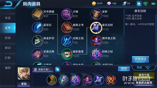 六神装:影忍之足、痛苦面具、回响之杖、博学者之怒、虚无法杖、巫术法杖