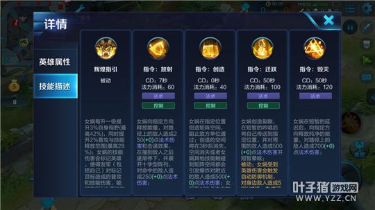 指令:毁灭:女娲在短暂延迟后对指定方向释放能量,对路径上的敌人造成法术伤害。该技能可以配合二技能,打出成吨的伤害,或者用来收割敌方残血。