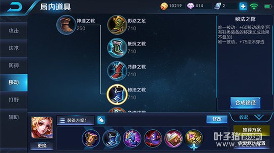 出装思路:妲己的这套出装技能够提供强大的回复能力与消耗能力,也让妲己拥有一定的爆发输出效果。游戏前期优先制作圣杯来增强妲己的回蓝速度,从而提高妲己的续航能力使其能够更好的带线发育,接着制作秘法之靴提高妲己的法术穿透能力略微提高妲己的前期输出能力使其更好的清理兵线。中期制作回响之杖提高妲己的瞬间爆发能力,接着制作博学者之怒进一步提高妲己的法术输出能力。后期制作噬神之书赋予妲己法术吸血效果,让妲己在后期的团战中能够更好的持续作战,最后制作辉月进一步提高妲己的输出与生存能力。