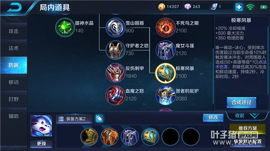 魔女斗篷可以增加梦奇的法术防御,而极寒风暴则能够提升梦奇的物理防御,魔女斗篷还可以提升梦奇的最大生命,极寒风暴可以增加梦奇的法力值,借助魔女斗篷的被动效果,能够为梦奇生成一个法术护盾,可以抵御敌人一定的法术伤害,利用魔女斗篷所带来的法术防御以及被动效果,可以让梦奇与敌方法师英雄作战时,将自身的消耗降到最低,并在一定程度上能够更好的牵制敌人,极寒风暴的被动效果可以让梦奇每损失一定百分比的生命值,就会对周围的敌人造成减速效果,利用这个减速效果,能够让梦奇有效的牵制敌人,从而可以在一定程度上能够对敌人造成强大的压制效果。