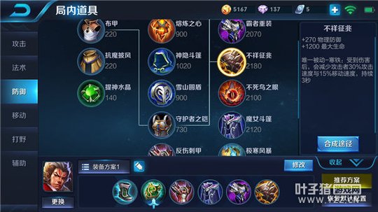 六神装:抵抗之靴+救赎之翼+反伤刺甲+魔女斗篷+霸者重装+不祥征兆