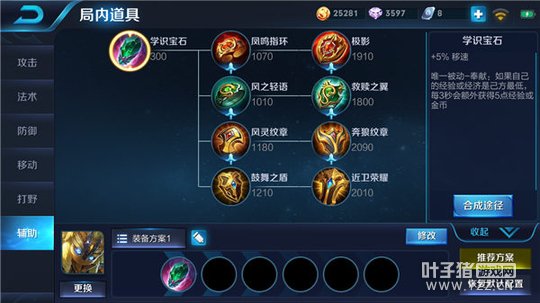 解析:鬼谷子在游戏开局时个人作用极大,因此需要频繁的游走在各个路线和野区中,以将个人作用发挥到最大,但这会导致鬼谷子经济增长缓慢,装备不易成型,但若出门选择装备学识宝石,则能根本上的加快鬼谷子的经济增长速度,为其中后期个人作用得以正常发挥提供了条件,且学识宝石还加强了鬼谷子的移速,进而加快了鬼谷子游走的速度,极大的简化了鬼谷子配合友军建立优势的难度。