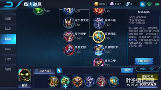 出装推荐:疾步之靴、救赎之翼、不祥征兆、魔女斗篷、反伤刺甲、极寒风暴