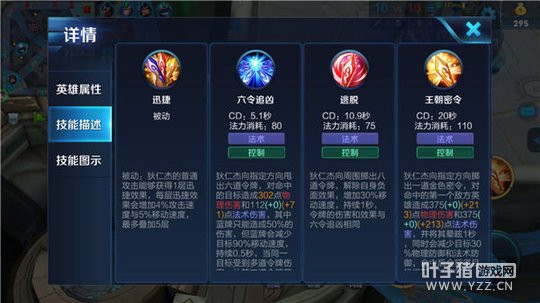 一技能——六令追凶:一技能是范围输出和消耗技能,技能释放时可以减速敌人,并触发普攻的法球效果,加强了狄仁杰的推线效率和留人能力。而技能的被动让狄仁杰的普攻,能打出额外的伤害或减速效果。