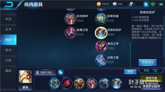 解析:反伤刺甲可大幅度提高老夫子的物理防御值,进而使老夫子达到了极大程度上反制敌军物理攻击型英雄的作用,且还能提高老夫子的物理攻击,大大提高了其为团队做出的输出贡献,且适应了后期团战敌军高物理防御值的特点,保证了老夫子对敌军英雄的打击力度。破甲弓是老夫子提高后期伤害的最主要装备,大大提高了老夫子对敌军各类英雄造成的伤害,并极大的削弱了敌军坦克英雄的作用,进而使得老夫子的个人英雄作用有了较为多元化的发展,团战胜利概率大大提高。贤者的庇护是老夫子后期参与团战的主要装备,可大大提高老夫子的作战能力,进而加强了老夫子的个人英雄作用。