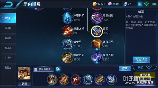 急速战靴+无尽战刃+泣血之刃+破甲弓+宗师之力+破军