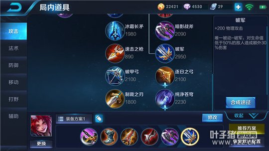 巡守利斧+急速战靴+无尽战刃+泣血之刃+暗影战斧+破军