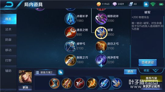 急速战靴+无尽战刃+泣血之刃+闪电匕首+名刀·司命+破军