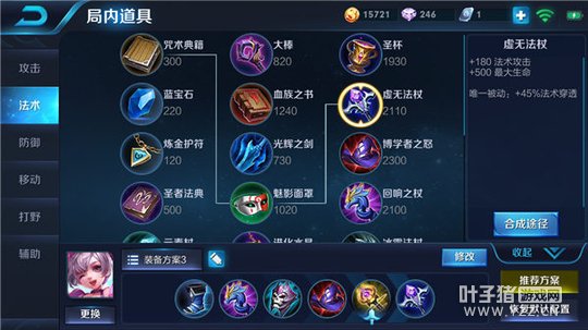 后期装备推荐:秘法之靴、回响之杖、痛苦面具、博学者之怒、辉月、虚无法杖