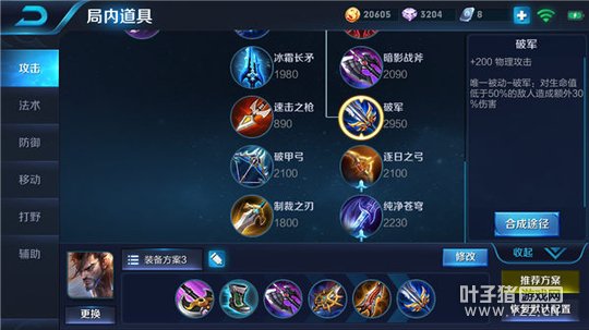 巡守利斧+抵抗之靴+暗影战斧+宗师之力+无尽战刃+破军