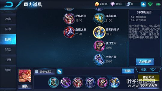 抵抗之靴+暗影战斧+反伤刺甲+魔女斗篷+暴烈之甲+贤者的庇护