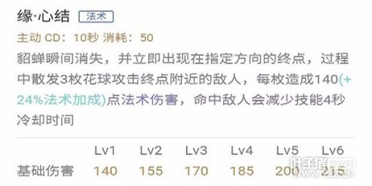 技能解析:二技能是貂蝉机动性的根本,命中敌人减少cd的机制让二技能在后期几乎没有冷却,但正是这种机制使貂蝉要时刻注意二技能的距离与敌人的方位。一旦没有命中,长时间的cd对于貂蝉来说是致命的。