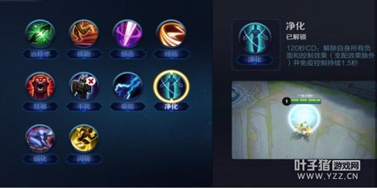 净化是貂蝉秀翻全场的关键,貂蝉只要活着就有输出,只要输出就能快速回血。所以如何躲避敌人的控制技成为了貂蝉玩家的难题,而净化则可以完美的解决这个问题。