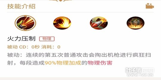整体分析:连续的第五次普攻会使用机枪进行疯狂扫射,造成多段伤害。这是一个AOE伤害技能,伤害十分可观,正是这个被动技能决定了鲁班七号的主要输出方式为普攻,同时如何在团战中打出多次被动效果十分关键。