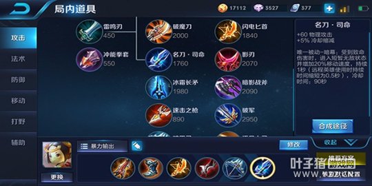无尽战刃+急速战靴+闪电匕首+泣血之刃+破甲弓+名刀?司命