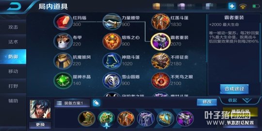 中期装备为红莲斗篷和魔女斗篷,红莲斗篷提高项羽的作战能力和清兵能力,魔女斗篷增加项羽的法抗属性。两件装备都从不同角度提高了项羽的坦度,保证了项羽的生存能力。