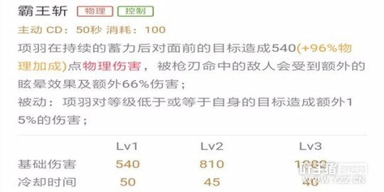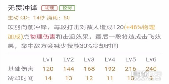 数值分析:基础伤害每段120(+48%物理加成),基础冷却14秒。该技能升到6级后冷却为9秒,命中敌人后减少30%也就是5秒,这也是项羽当前版本强势的原因所在,控制技能后期CD很短,具有良好的保护后排和团战控制的作用,故主加一技能。
