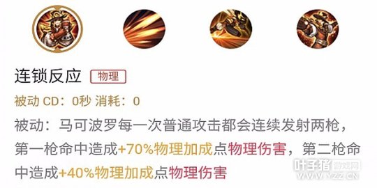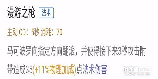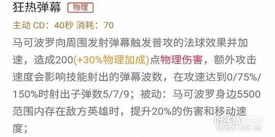 被动技能,普通攻击能造成两次不同的伤害,使用泣血之刃能更快的回复自身血量,攻速提升后通过走A可以打出更多下普通攻击伤害,红buff减速有利于马克波罗走A风筝敌人。