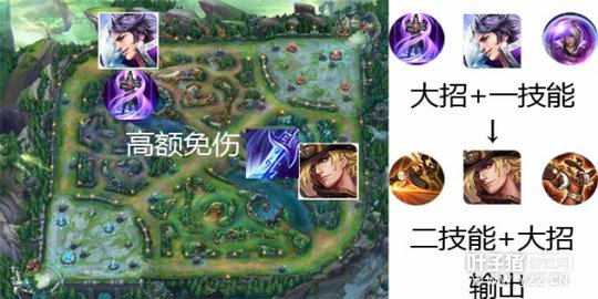 刘邦大招免伤和一技能护盾能让马克波罗无后顾之忧,纯净苍穹主动技能免伤+刘邦大招免伤可以安心启用大招+二技能造成群体伤害,刘邦落地后嘲讽残血英雄使用一技能或者走A把他击杀,中期马克波罗和刘邦使用131套路单带兵线,兵线能限制他们派人过去守塔,情况不对刘邦可以飞到马克波罗身边队友赶过来可以尝试打一波,即使没有团战单带一路的兵线能让马克波罗获得更多的经济和经验,兵线的牵制能让他们频繁的守塔,他们守塔时候可以把暴君或者主宰拿下。
