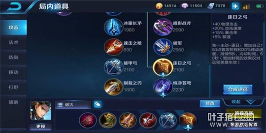 六神装:末世,影忍之足,无尽战刃,泣血之刃,破甲弓,逐日之弓
