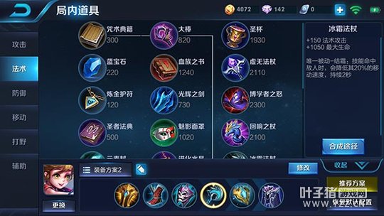 冰霜法杖:是一件功能型的装备,主要的作用是让孙膑的技能在命中敌人时还能附加额外的减速效果,让孙膑的控场能力更强,同时也能提升孙膑的输出和生存能力。