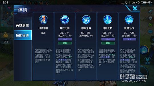 分析:增加大乔以及附近友军的移动速度,等级越高增加的速度越多,被动技能不仅让大乔自身的支援能力更强,在团战时也提升了整个团队的机动性。