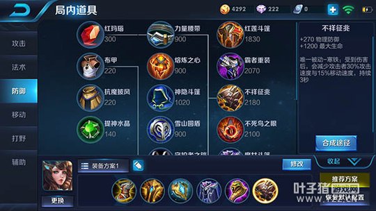 分析:这里不得不说一下另外几个辅助装备,辅助装备的基础属性都是提供生命值和移速,同时还有一个共同的被动效果,能够加快发育,近卫荣耀和其它辅助装备有区别的是,近卫荣耀的最后一个效果是被动效果,其它辅助装备的最后一个效果是主动效果,虽然从属性的提升上来看主动效果提升的属性更多,但是由于大乔高频率地游走,主动效果的冷却时间并不足以支持大乔连续使用,所以对于大乔来说,近卫荣耀的收益更高。