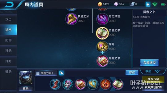 六神装:冷静之靴、痛苦面具、噬神之书、极寒风暴、不死鸟之眼、贤者之书